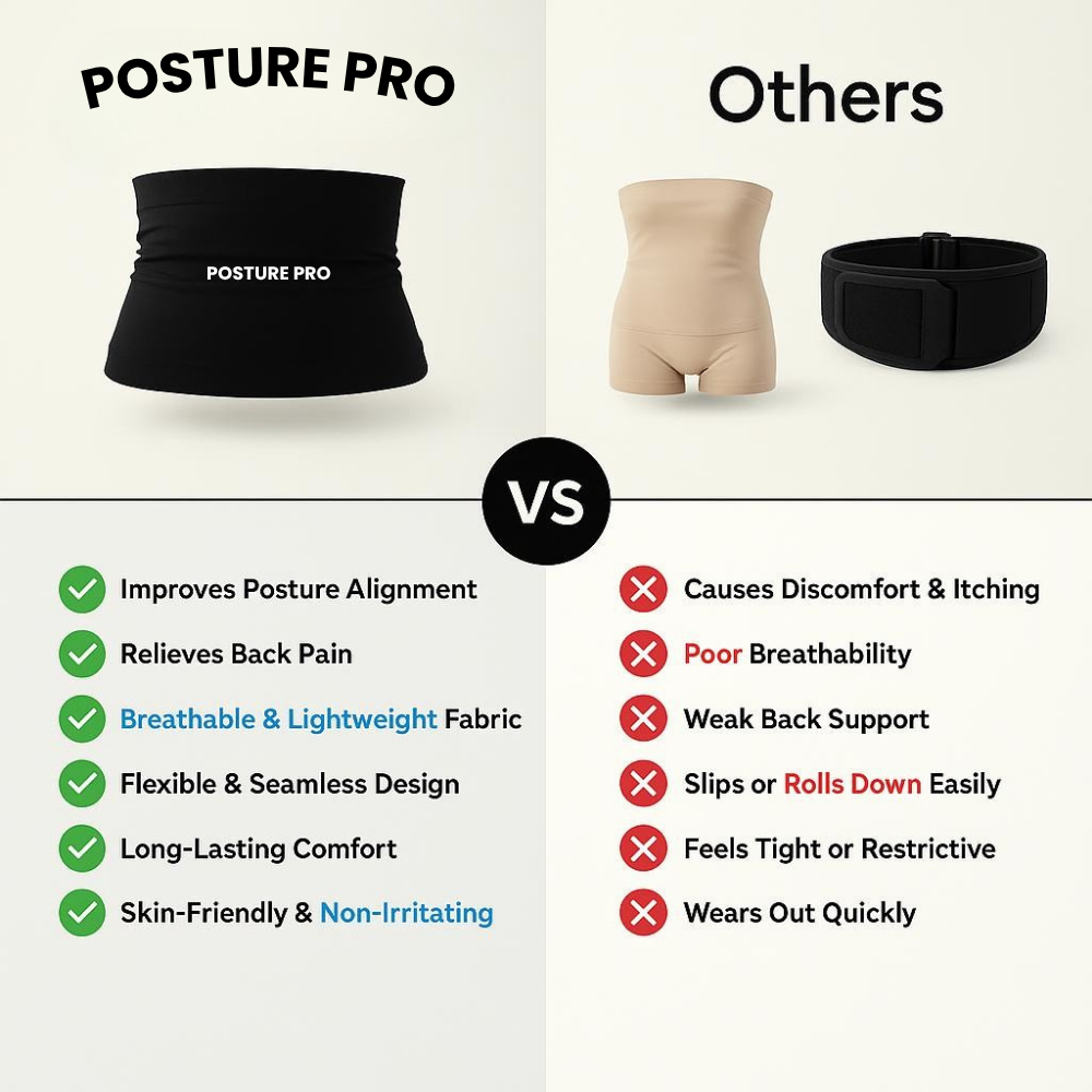 if you wake up with stiffness, struggle through long work days with stabbing lower back pain, or find yourself constantly adjusting your position to get comfortable—PosturePro was made for you. Traditional braces feel medical, bulky, and restrictive. PosturePro is different. It delivers therapeutic support without the stiff, uncomfortable feel, giving you a sense of security on days when your back feels weak. Whether you're working long hours, running errands, or just relaxing at home, PosturePro helps you get through your day without that nagging pain holding you back.